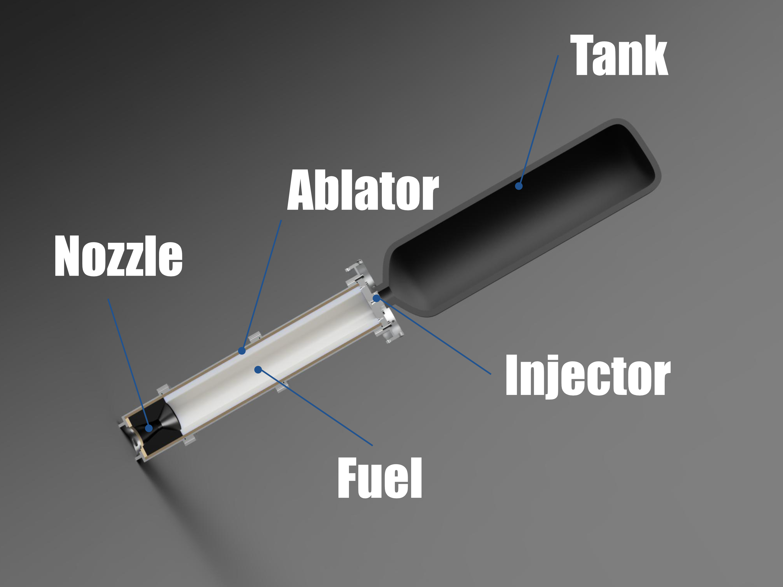 ハイブリットロケットは火薬や扱いの難しい液体酸素を用いずに,液体の酸化剤と固体のプラスチックという2つの物質を扱う安全なエンジンを用いたロケットです.