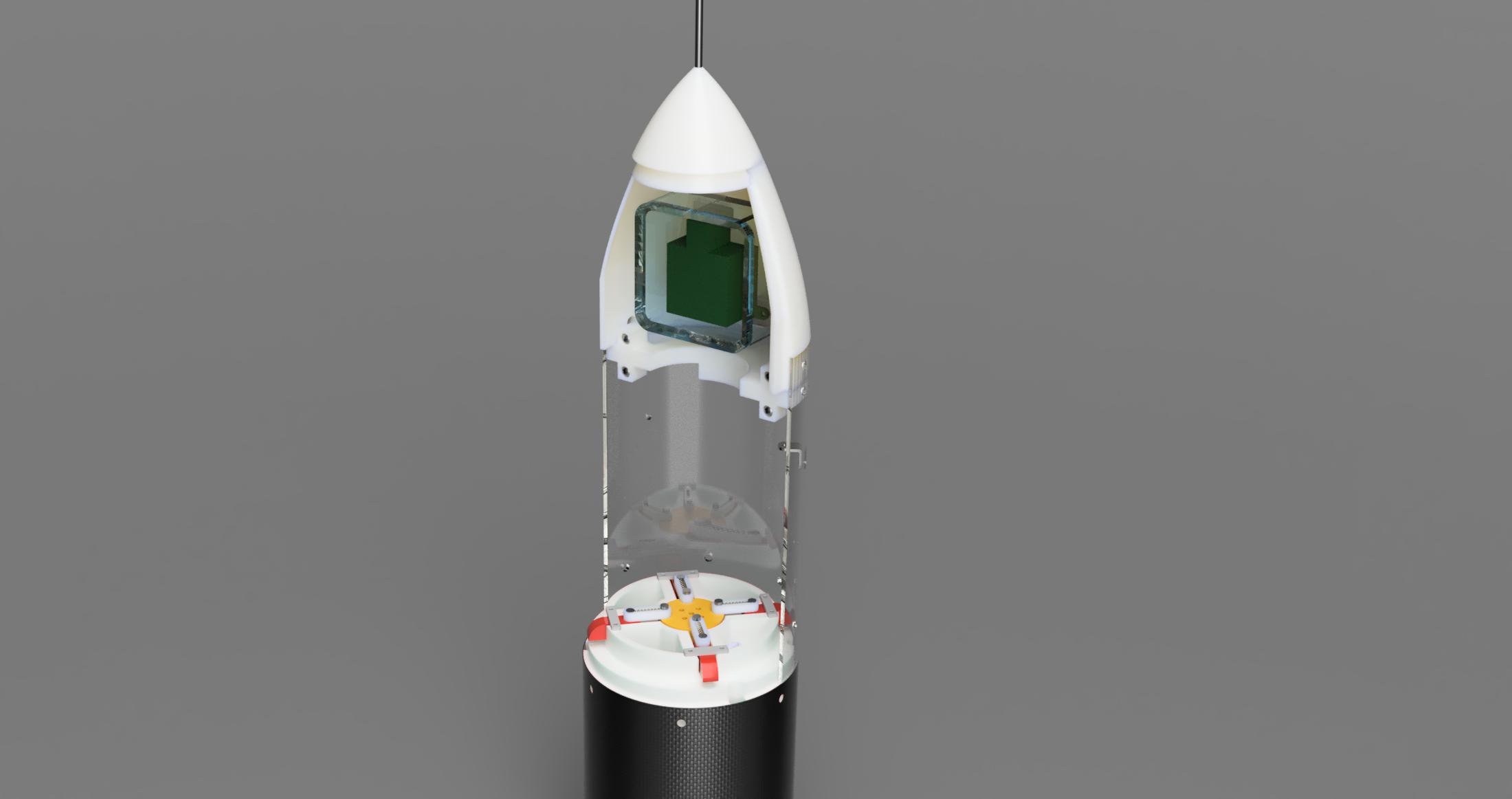 ノーズ,開放,電装,推進,フィンの5つの部に分かれ,推力による圧縮・引張応力・空力荷重などを考慮し, 破壊されないよう,安全な構造を設計します.